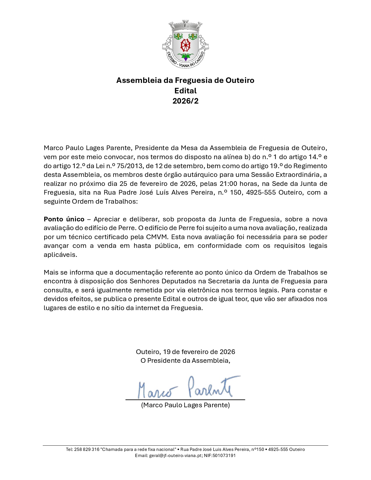 Este espaço foi criado para aproximar a Junta da comunidade, promovendo uma comunicação mais direta, transparente e acessível a todos os Outeirenses.